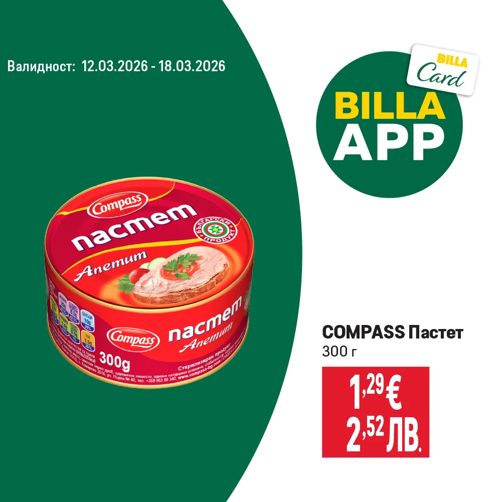 Валидно от 12.03.2026 г. до 18.03.2026 г. Посочените цени са обозначени в евро и лева по валутен курс 1 € = 1,95583 лв. и са с включен ДДС.