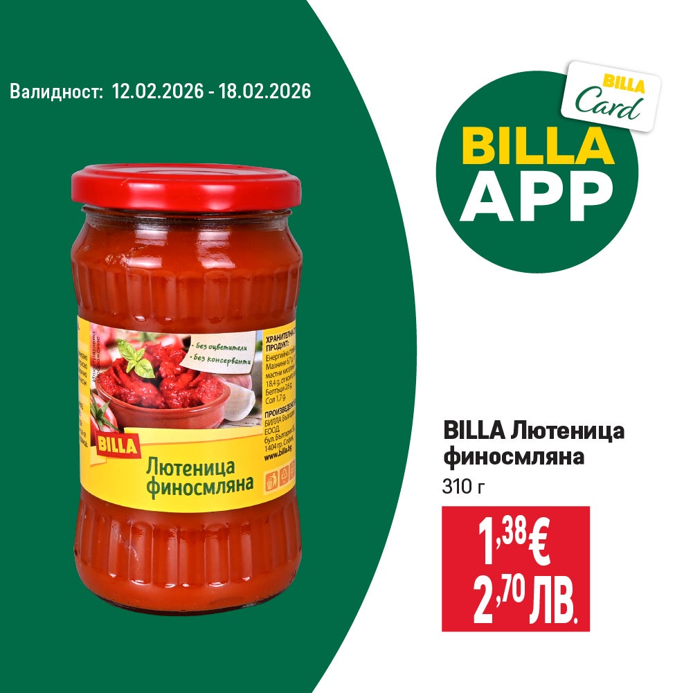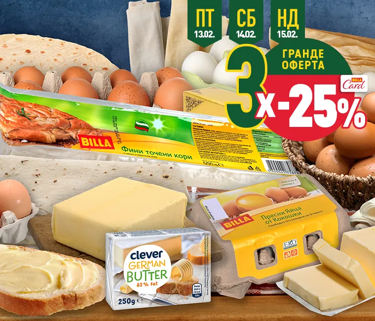 Валидно от 12.02.2026 г. до 18.02.2026 г. Посочените цени са обозначени в евро и лева по валутен курс 1 € = 1,95583 лв. и са с включен ДДС.