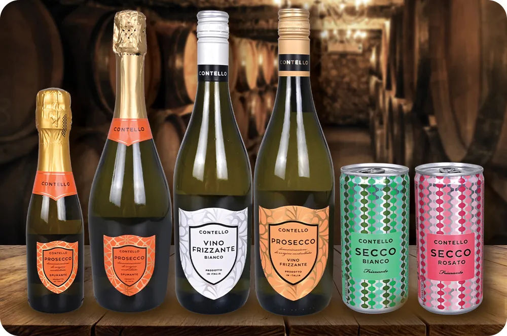 Contello предлага селектиран асортимент от различни видове просеко DOC и пенливо вино. В основата на пирамидата за качество е внушителният Prosecco DOC (Denominazione d ‘Origine Controllata), което означава защитено наименование за произход, контролиран чрез апелация. Това представлява правни категории на качеството, установени с цел откриване и награждаване на най-големите и най-добрите вина от Италия съгласно конкретни правила за разрешените сортове грозде, максималните добиви и изискванията за отлежаване. Каква е разликата между Spumante и Frizzante? Prosecco DOC Spumante е най-известният и популярен вид просеко с ясно изразен характер и по-дълготрайни мехурчета. Prosecco DOC Frizzante е нежно вино с деликатни мехурчета, които се задържат по-кратко време.