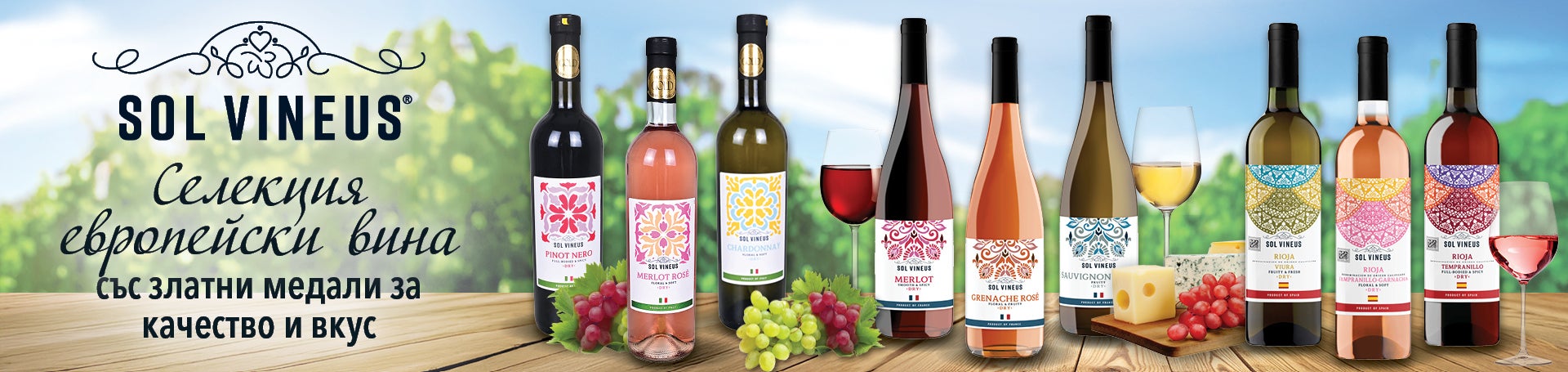 Селекция европейски вина със златни медали за вкус и качество Sol Vineus