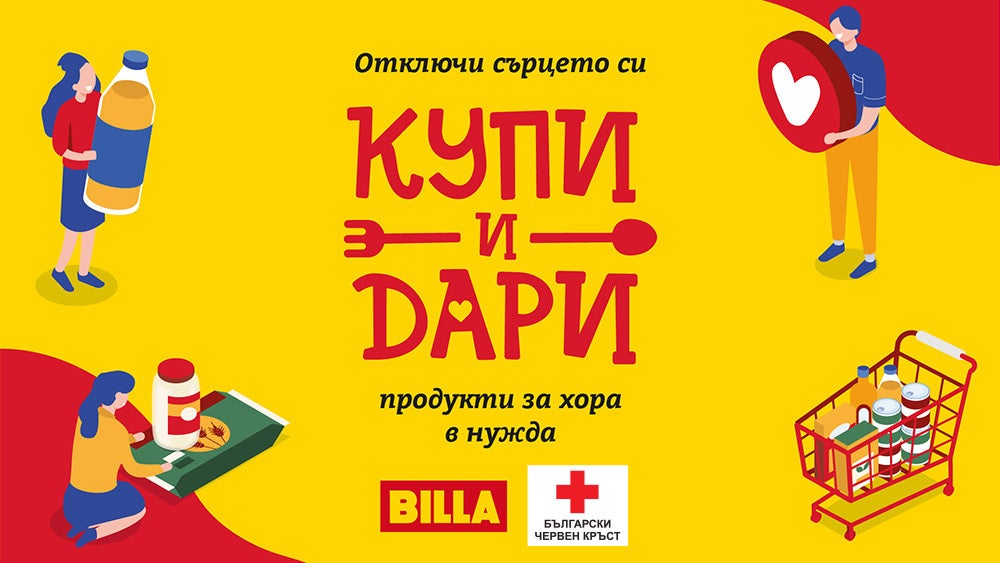 BILLA България предлага на клиентите си възможността да подкрепят благотворителната инициатива, като закупят и дарят продукти от първа необходимост. Списъкът включва брашно, варива, макаронени изделия, захар и захарни изделия, олио, зеленчукови и месни консерви. Компанията се ангажира да добавя хранителни продукти към събраните дарения в своите обекти веднъж месечно, а разпределението се извършва от Българския Червен кръст, като се взимат предвид нуждите на индивидуални лица и институции. Търговската верига разполага с магазини в 25 от 28-те области на територията на страната, което спомага за включването на голям процент от населението в кампанията „Купи и дари“.