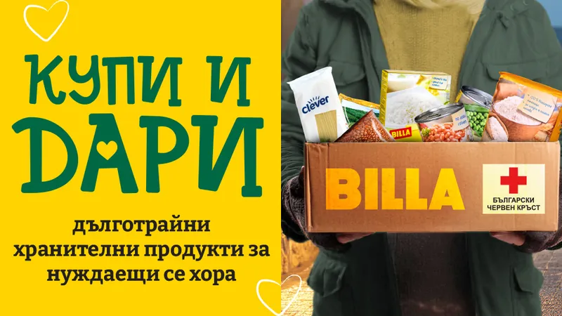 BILLA България и нейните клиенти са дарили над 16 тона трайни хранителни продукти в подкрепа на хора в неравностойно положение през 2025 г. в рамките на кампанията „Купи и дари“. Със събраните дарения са подпомогнати нуждаещи се българи, живеещи в бедност и деца, лишени от родителска грижа или настанени в социални институции.
