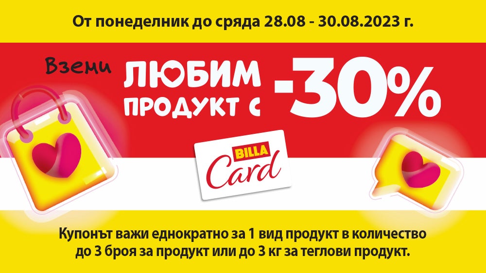 BILLA предлага -30% на произволен продукт, избран от клиента
