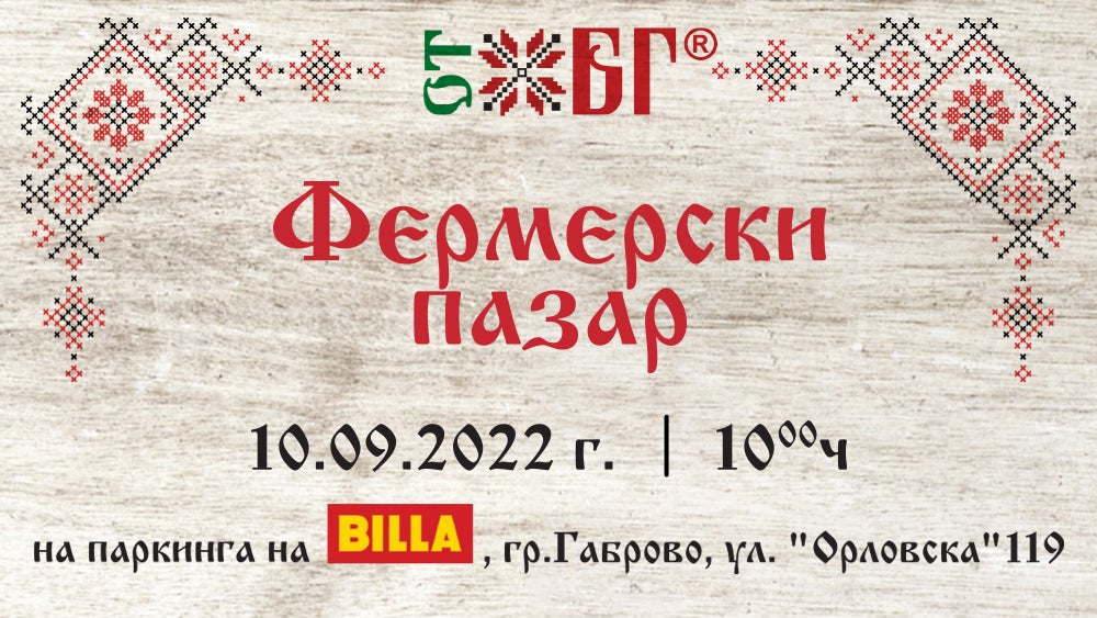 08/09/2022 - С падането на първите есенни листа, магазинът на BILLA в гр. Габрово, разположен на ул. „Орловска“ № 119, в близост до спортна зала "Орловец", ще посрещне отново Фермерския пазар „ОТ БГ“. Той ще се състои на 10 септември, от 10.00 до 17.00 часа, на паркинга на обекта. Родни производители, фермери, занаятчии и творци ще зарадват посетителите с изобилие от сезонни плодове и зеленчуци, разнообразни деликатеси и празнични изделия, формиращи от векове българския вкус. Един от всички присъстващи ще има възможността да спечели награда от традиционната томбола – подбрани занаятчийски продукти.
