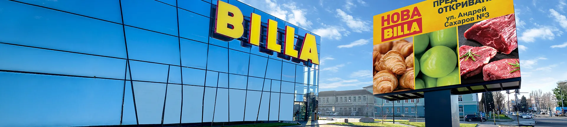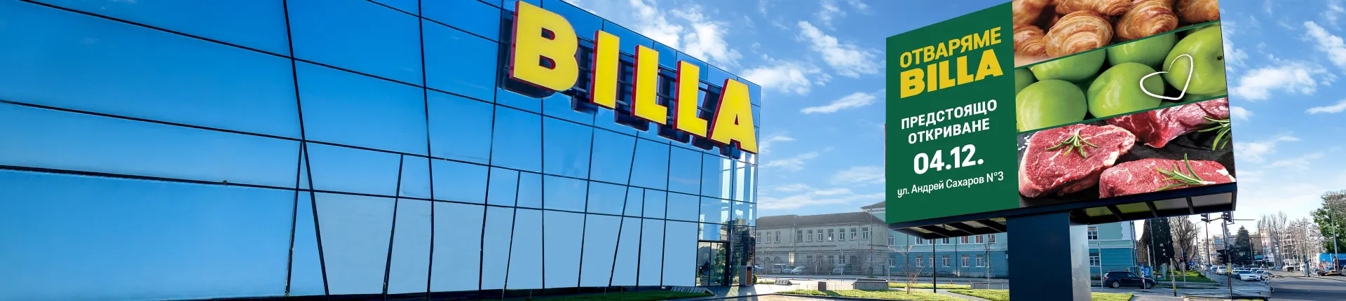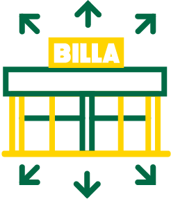 BILLA България стратегически инвестира в нови локации и имоти, с цел разширяване на мрежата от супермаркети. Чрез експанзия се анализира пазара и се подбират най-подходящите места за развитие, заедно с реализиране на инвестиции, съобразени с потребителските навици и потенциала на всяка локация.