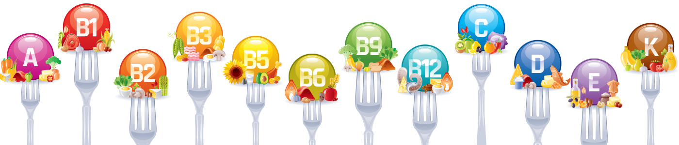 Здравословната диета включва храни, богати на витамини. Изключително важно е оптималното смесване на различните храни, тъй като не всички храни съдържат еднакви витамини. Добри източници на витамини са:
