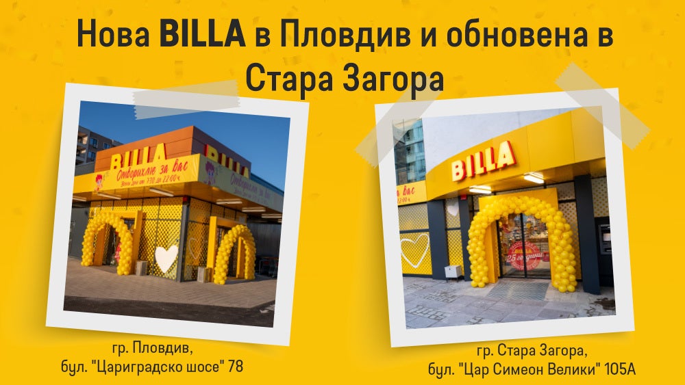 На 20 март BILLA отвори два магазина. Първият е чисто новият филиал на булевард „Цариградско шосе“ №78 в гр. Пловдив, район „Източен“. Инвестицията в модерния супермаркет е за повече от 3,5 милиона лева. Търговската площ е от близо 1 000 кв. м., а асортиментът е от над 9 000 артикула.