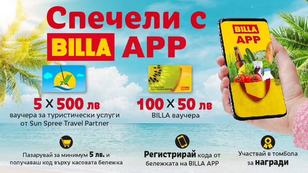 В периода 27 юли - 23 август BILLA България ще зарадва допълнително своите лоялни клиенти с Кампания „Спечели с Billa App“, предлагаща възможност за участие в томбола.