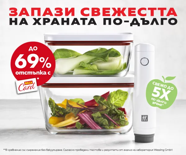 Богата продуктова гама от избрани артикули на достъпни цени ще зарадва почитателите на добре организираната кухня, в която се случват някои от най-незабравимите мигове у дома. Клиентите могат да избират между вакуум кутии за съхранение и съд за печене с различен размер, вакуум помпа и тапа за вино, електронна везна, ръчен миксер и блендер, тенджера за готвене под налягане – с до 69% отстъпка за притежателите на BILLA Card, и с до 33% – за потребителите извън програмата за лоялност.