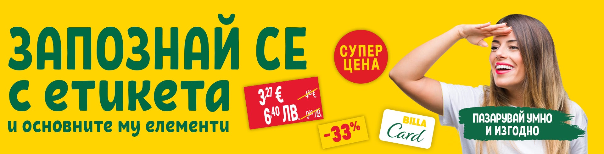 www.billa.bg. Ограниченията в закупуваните количества и срокът на валидност на офертата са посочени на ваучера. Продуктите могат да бъдат закупени без дигитален ваучер на продажната цена, обявена на етикета в магазина. Отстъпката получаваш веднага на каса. Повече в BILLA App и на