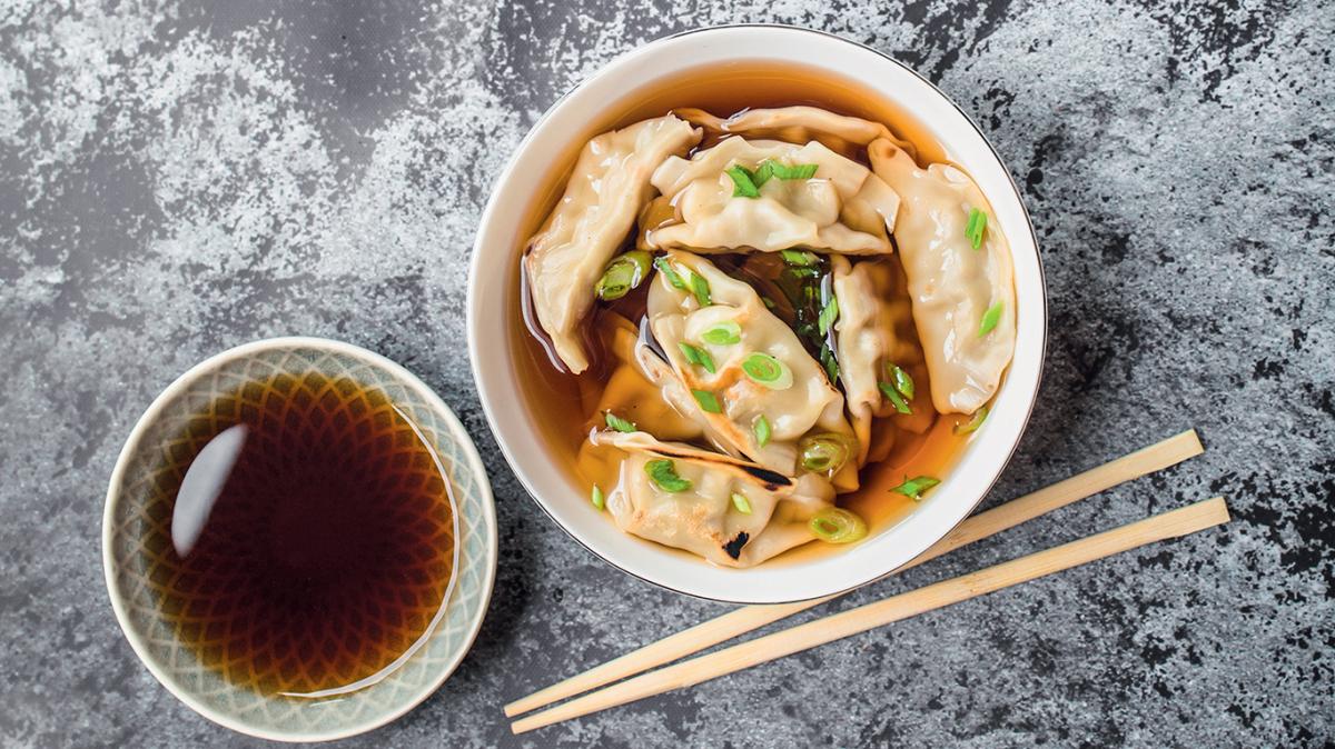 Бульонът се кипва с 40 мл соев сос и в него се готвят дим-сум. Сервират се поръсени със зелената част на пресния лук и соев сос.