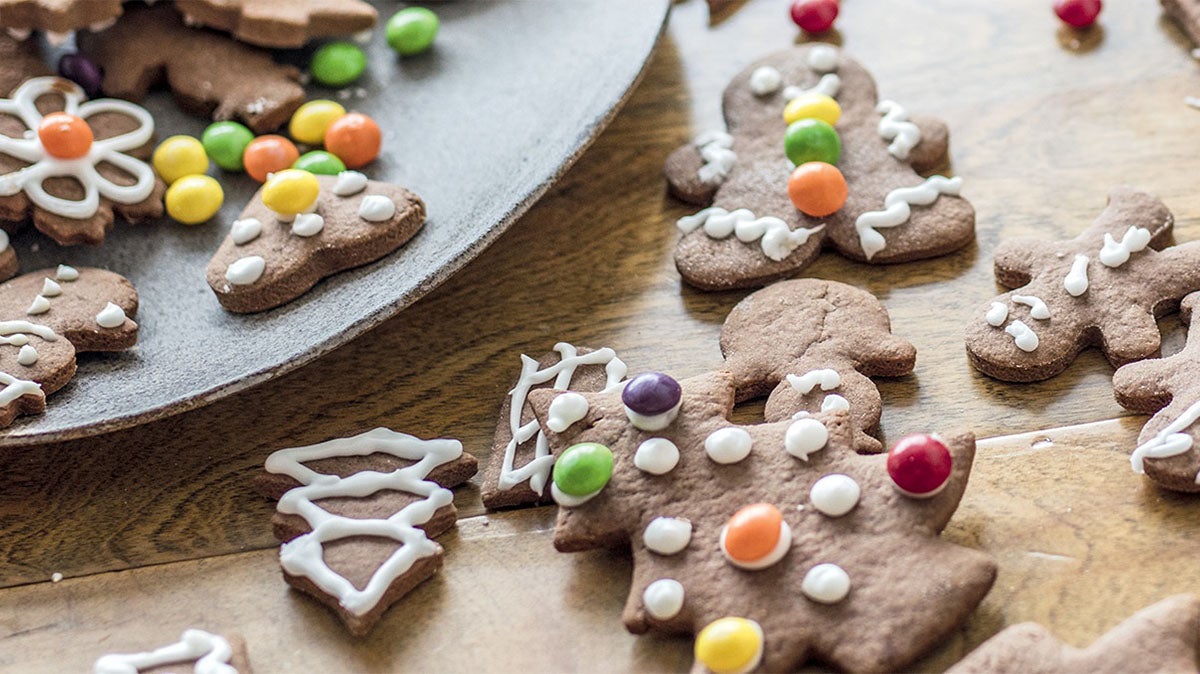 Охладеното тесто се разточва на тънко върху набрашнен плот и с помощта на формички за тесто се изрязват бисквити с желаната форма. Ако искате да окачите бисквитите на коледната елха, направете дупка на всяка, за да можете по-късно да ги използвате за коледна декорация. Оформените бисквити се подреждат в тава, покрита с хартия за печене и се слагат в предварително загрята фурна. Джинджифиловите сладки се пекат за 7–8 минути на 180 °C.