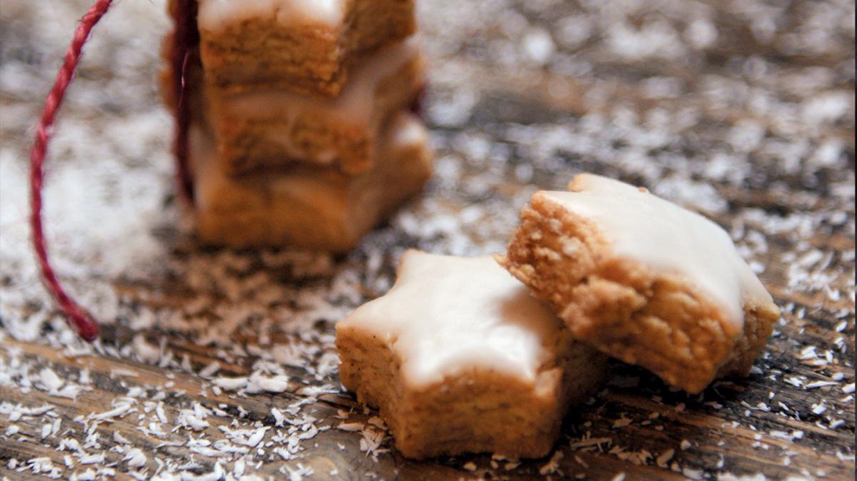 Прибира се в хладилник за 30 минути. Разточва се върху набрашнен плот на дебел лист и от него се изрязват малки звезди с помощта на форма за сладки. Фигурките се подреждат в подходяща тава, застлана с хартия за печене и се пекат в загрята на 170 °С фурна около 13 минути или докато покафенеят. Охлаждат се.
