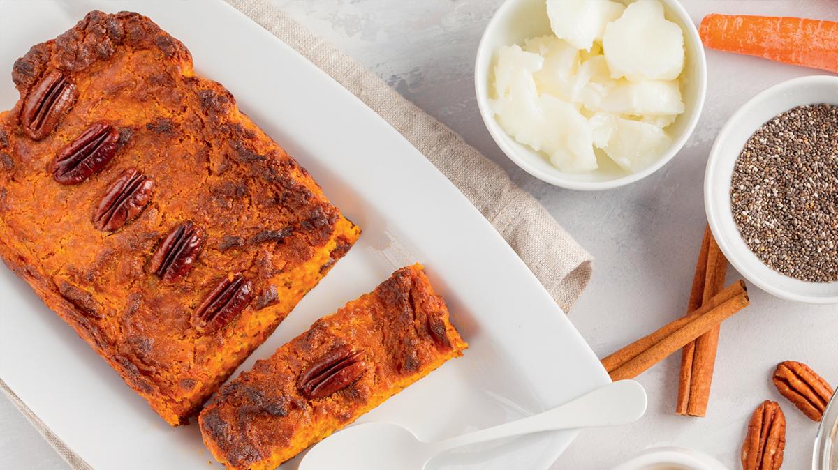 Размекнатото масло се разбива със захарта. Едно по едно и при непрекъснато разбиване се прибавят яйцата. Слагат се брашното, пресято с бакпулвера, смлените ядки, фино настърганите моркови, семената от чиа, джинджифилът, канелата, настърганата кора и сокът от половин лимон.