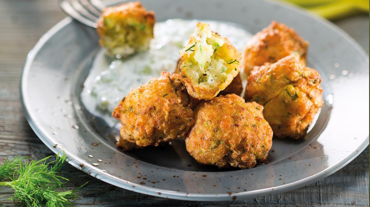 Сиренето „Халуми“ се настъргва, а копърът се наситнява. Яйцата се разбиват с прясното мляко, смесват се с брашното и сол на вкус. Прибавят се тиквичките, сиренето, копърът (4 стръка се отделят за соса) и сушеният чесън. От сместа се оформят кюфтенца и се пържат в сгорещено олио.