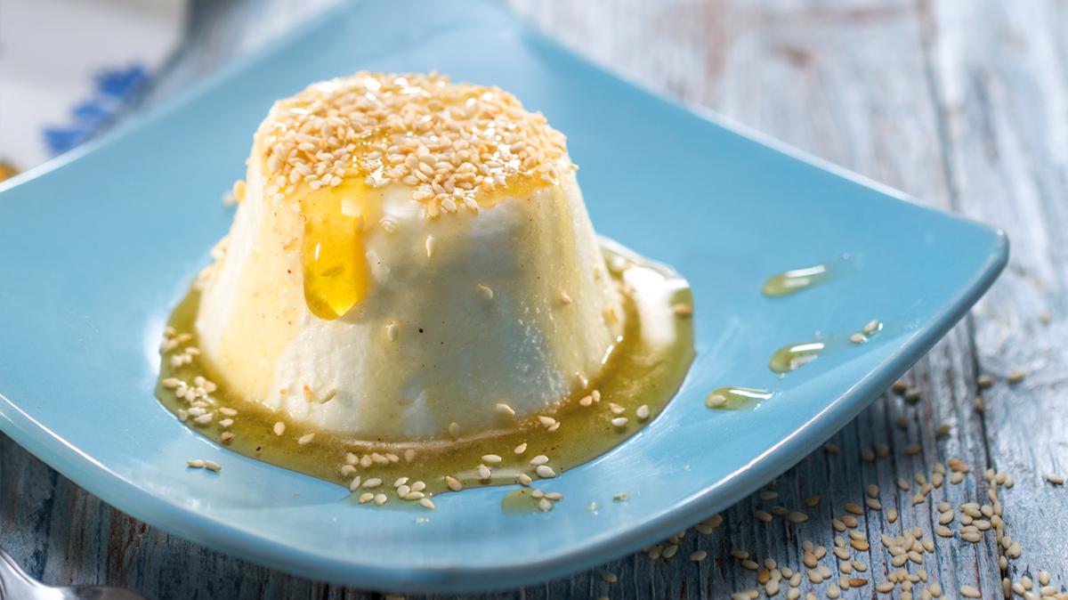 Мусът се сервира с медения сос и запечен на сух тиган сусам. Поднася се с вино „Керацуда“.
