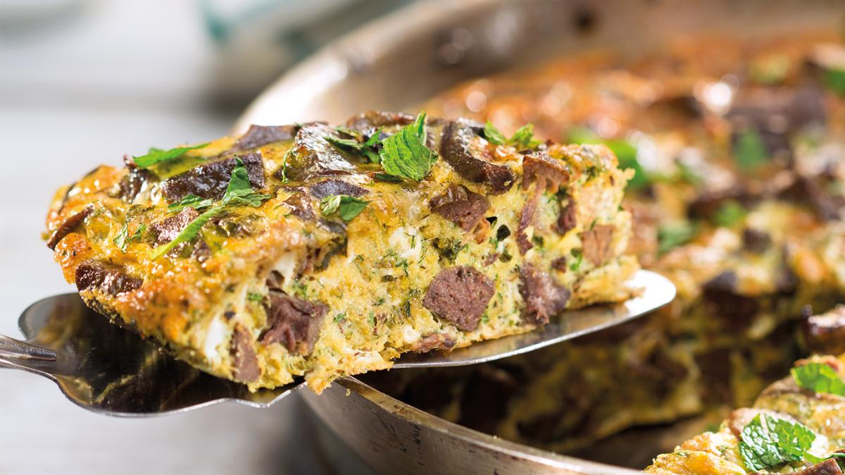 Готовият омлет се обръща върху чиния, поръсва се с нарязана мента и се поднася веднага.
