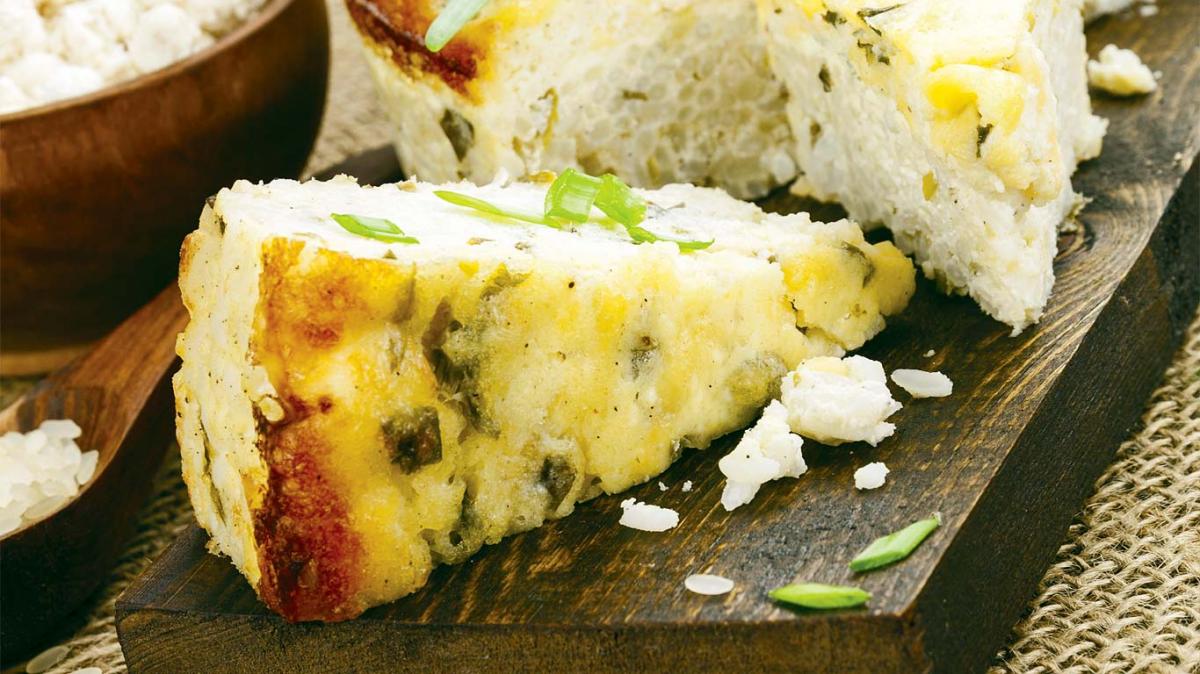 В подходящ съд се слагат свареният ориз, запърженият зелен лук, сместа със сирене и нарязаните каперси, и всичко се разбърква добре до хомогенизиране.