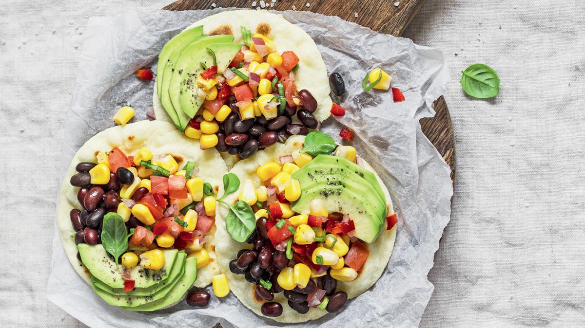 Авокадото се почиства, обелва и реже на тънки резени. Смесва се с боба и царевицата. Върху всяка тортила се поставя от приготвените зеленчуци и салцата. Отгоре се поръсват с листа босилек и по желание се сервират с резени лайм.