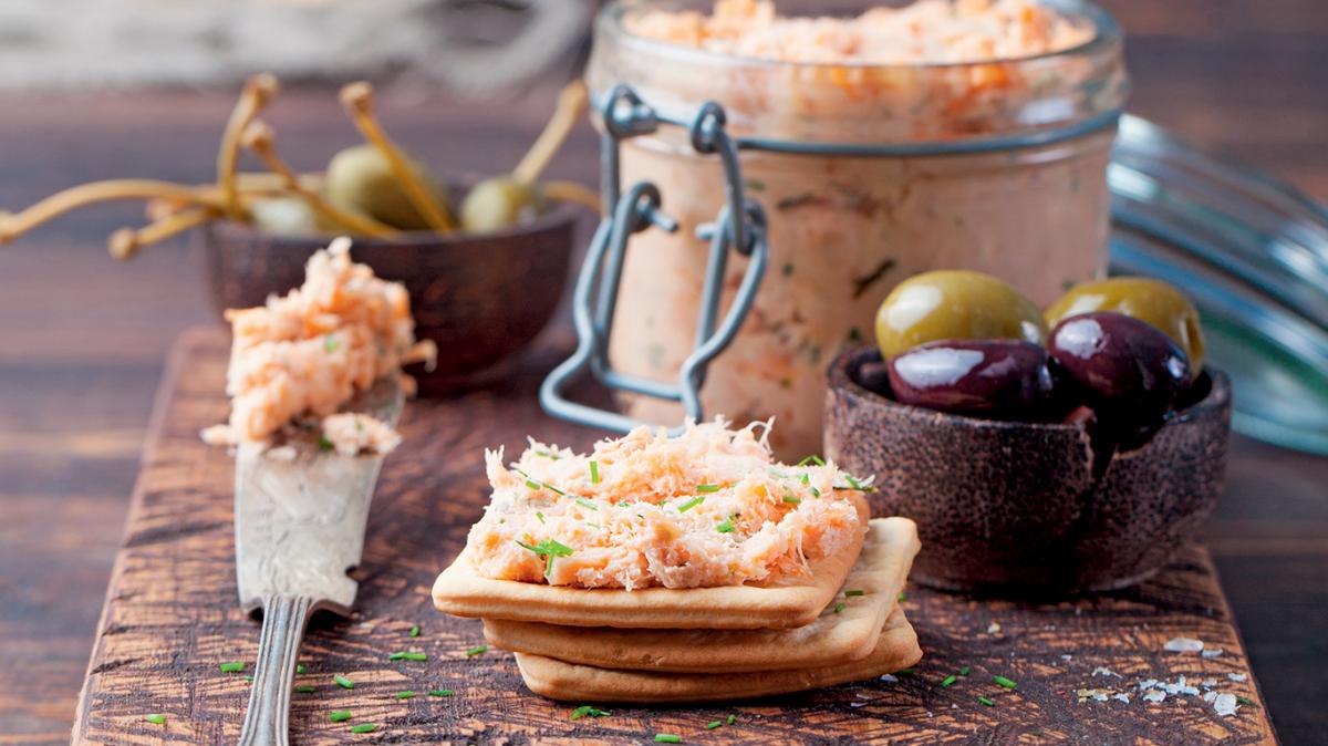Прибавят се сьомгата, 5–6 нарязани черни маслини, 20 г каперси и половината ситно нарязан копър. Сместа се смила за кратко, ако желаете пастет с по-зърнеста консистенция, или се мели по-продължително, ако желаете гладък пастет.