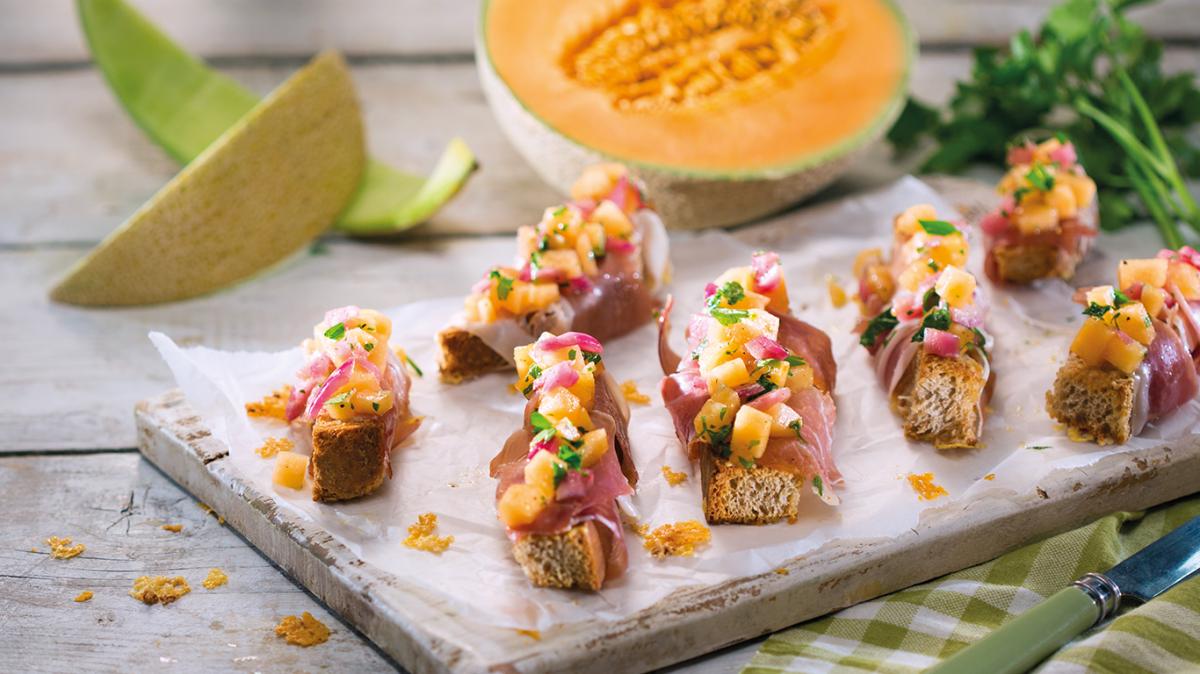 Запеченият хляб се покрива с ленти прошуто, поръсва се със салцата и се сервира.