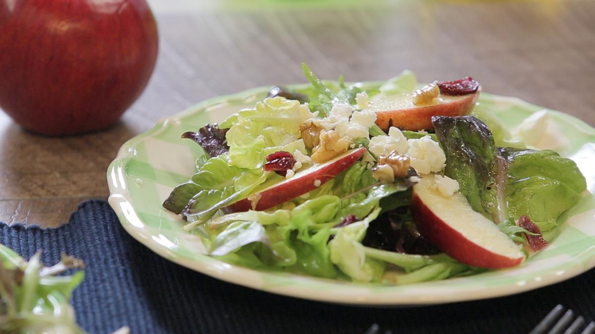 Съставки за remove add Порции500 гсалатен микс1 бр.червена ябълка0.5 ч.ч.нарязани орехи0.5 ч.ч.овче сирене1 шепасушени боровинки1 с.л.ябълков оцет1 с.л.ябълков сок5 с.л.маслиново маслоПриготви