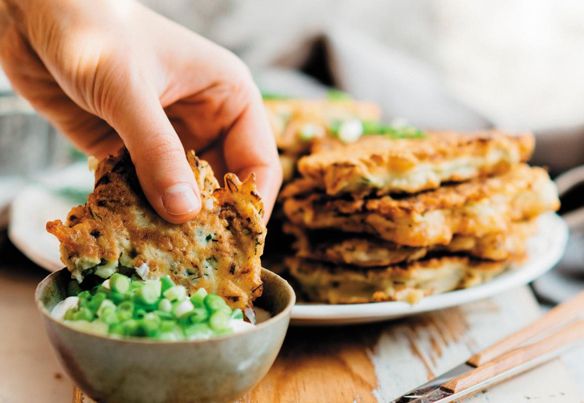 Шницели от тиквички с дип от заквасена сметана и пресен лук