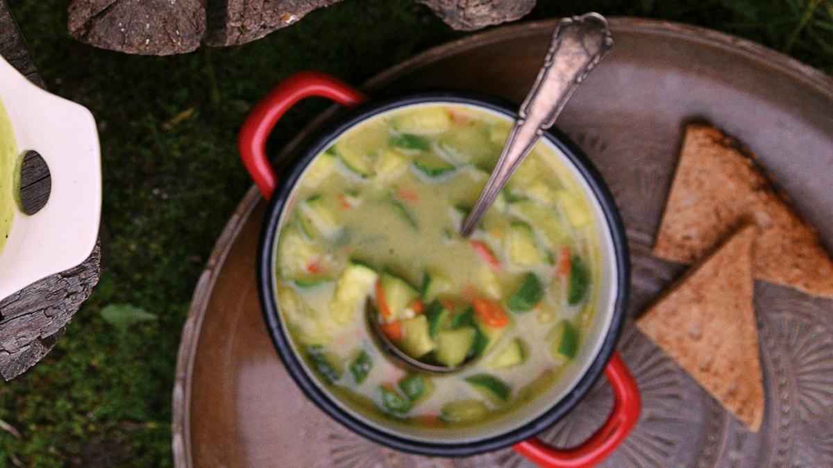 Маслиновото масло се загрява на умерен огън, прибавят се наситненият лук и лютата чушка. Сотира се, докато лукът стане прозрачен, и се слагат чесънът и нарязаните на кубчета тиквички.