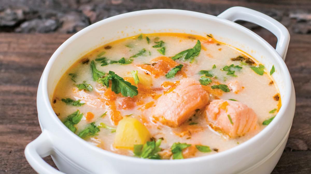 Слагат се сметаната и нишестето, предварително разтворено с 2 с. л. студена вода, и супата се готви още 2–3 минути.