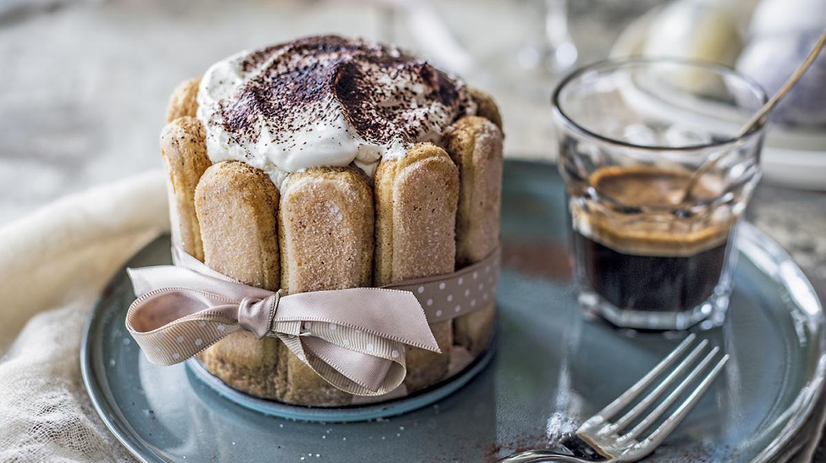 Дъното и стените на една по-голяма кръгла форма или няколко по-малки се покриват с бишкоти, предварително потопени в кафето с ликьора. Вътре се слага кремът с какао, а отгоре – светлият крем. Десертът се прибира в хладилника, за да се охлади и да стегне.