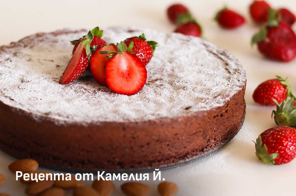 1accessibility.recipes.cookingstepРазтопете шоколада и маслото на слаб огън или на водна баня. Разбъркайте до гладка смес и оставете леко да се охлади.2accessibility.recipes.cookingstepОтделете жълтъците от белтъците. Разбийте жълтъците с 2/3 от захарта и портокаловата кора до пухкава смес, добавете рома и разтопения шоколад.3accessibility.recipes.cookingstepДобавете бадемовото брашно и разбъркайте внимателно с шпатула.4accessibility.recipes.cookingstepРазбийте белтъците с останалата захар на твърд сняг и ги прибавете към шоколадовата смес, като бъркате внимателно отдолу нагоре.5accessibility.recipes.cookingstepНамажете формата с масло, изсипете сместа и загладете.6accessibility.recipes.cookingstepПечете на 180°C (статична фурна) около 30–35 минути.7accessibility.recipes.cookingstepСлед като се охлади, поръсете с пудра захар.