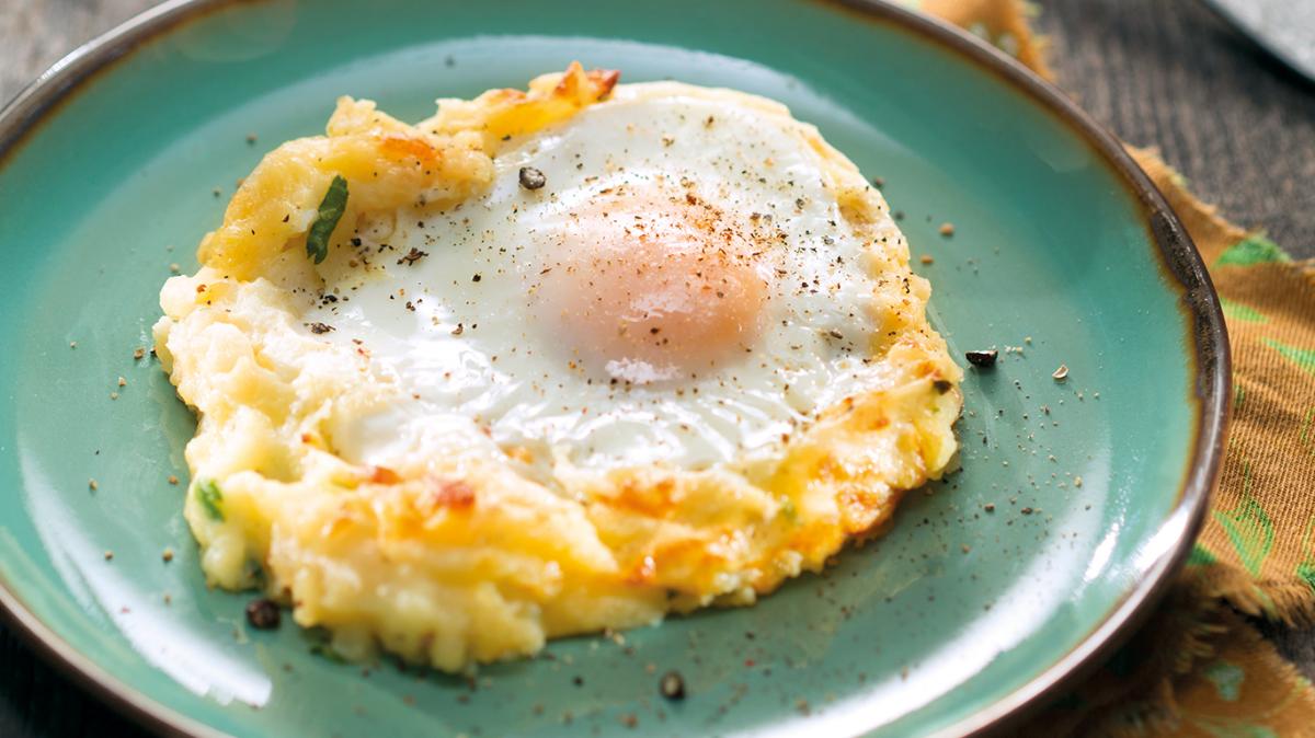Плитка тава с незалепващо покритие се намазва с олио. В нея от картофеното пюре се оформят 6 гнезда. Във всяко се чуква по едно яйце. Пекат се 10 минути в загрята на 220 °С фурна с вентилатор. Сервират се поръсени с черен пипер.