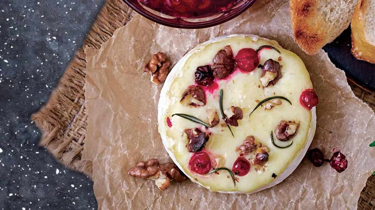 Запеченото сирене се поръсва с малко сол, полива се с боровинковия сос и се поръсва със запечените орехи и розмарин.