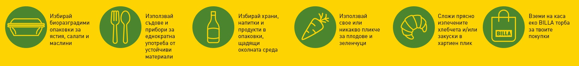 Всички ние можем да помогнем за намаляване на пластмасовите отпадъци без много усилия с малки промени в начина си на живот. Билла България подкрепя усилията на Европейския съюз за намаляване на използването на пластмасови продукти за еднократна употреба.